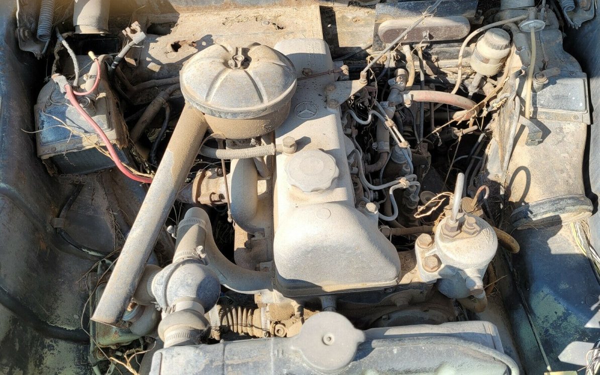 It is suggested, “As you can see from the pictures that the body is in good shape with a few defects“. Yeah, maybe, it’s hard to tell with it disassembled and so much missing which begs the question of “what happened to it to end up as it sits?” There is no disclosure on that front but the seller states that he was going to combine this Mercedes with a 1959 190D (the 190D reference perhaps?) to make one good car. At first blush, the few exterior images are not indicating signs of serious rust or crash damage but they’re not very revealing either. If you examine all of the images, there are several of what looks like a field-find of miscellaneous items but what’s there, what’s not, and what needs to be is undisclosed.