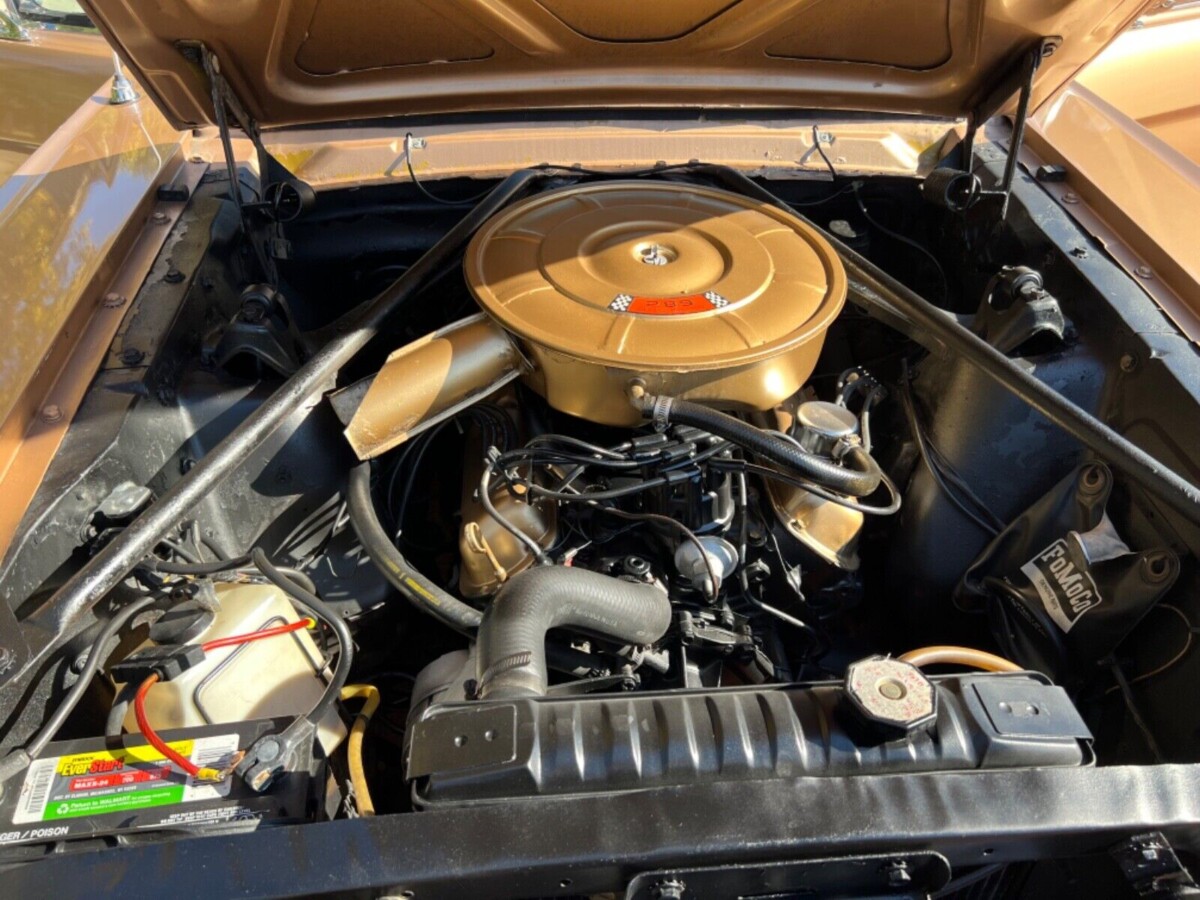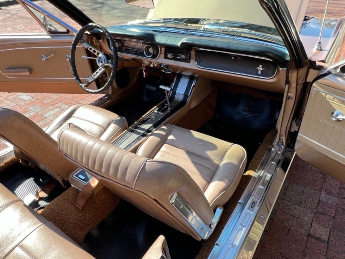 The body looks solid on this machine and the Prairie Bronze Metallic paint is quite nice but not perfect as there are a few small blemishes (original finish? We don‘t know). The ‘Stang was ordered with a matching two-tone “pony” interior with a black power convertible top. As you can imagine, this car is an attention-getter and looks like an automobile with 41,000 miles, which is what the seller claims. This vehicle is powered by Ford’s 289 cubic inch V8 with an automatic transmission.