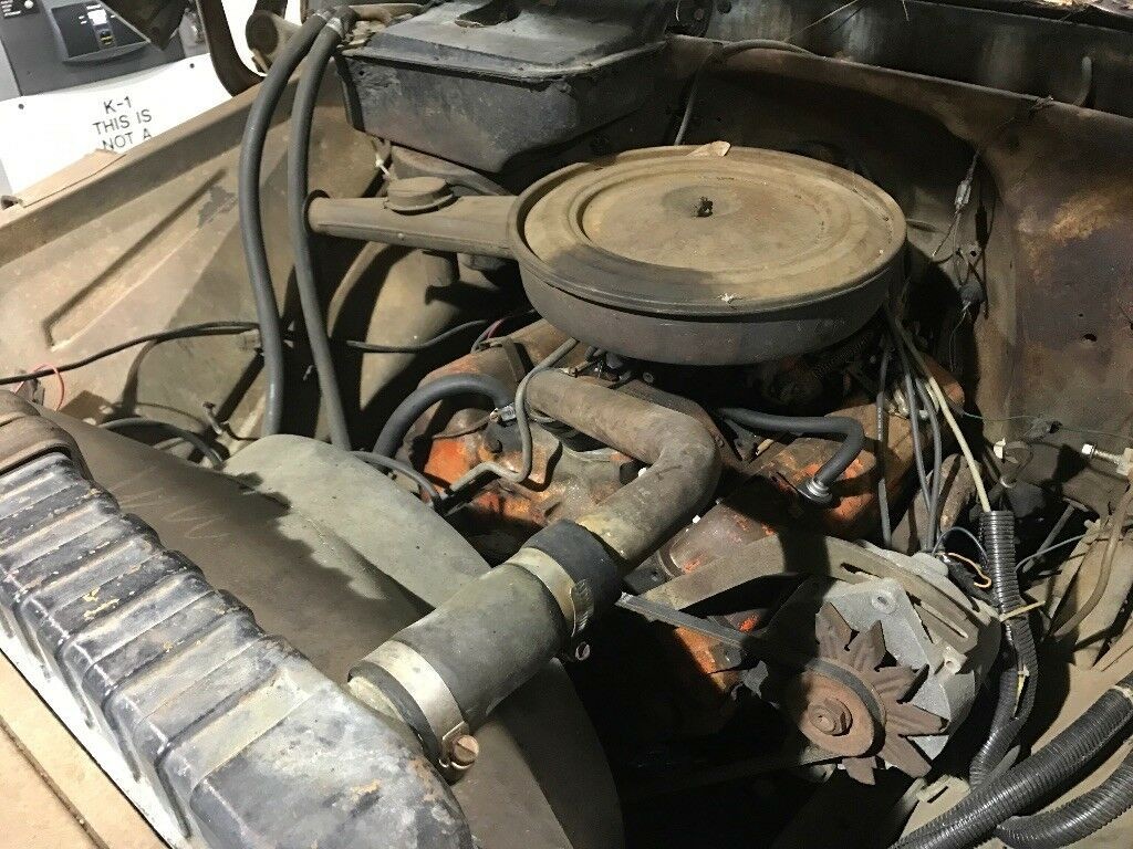 The longshot is the block (only) is still the original. From the one lone engine picture, the safe money is on a whole different engine , a 350? Could be a 305 or 307.