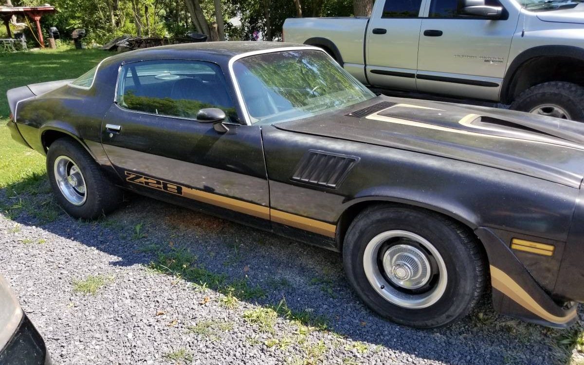 The Z28 was clearly one of the favorites in Chevrolet showrooms in 1979. They now came with a front spoiler and fender flares like the Pontiac Trans Am and the Z28 decals ran from the front flares to the door bottoms. The Z28 came with a 350 cubic inch V8 that put out 170 hp, available with an automatic transmission or 4-speed. The seller’s car comes with the latter.