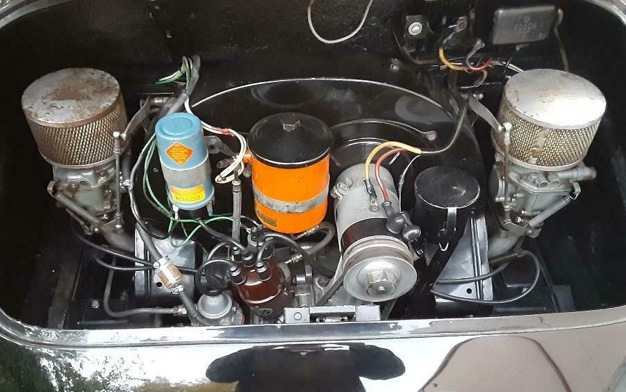 Changing out engines in these cars was pretty common. It wasn’t expensive and an easy way to replace a worn out or damaged engine. While in Europe in the ’70s with our ’64 C coupe the factory put out a bulletin advertising having one 912 engine left in their inventory. Our car had 70K on it and ran well but the idea of the factory installing the newer, faster engine was too much to pass up. Got to the factory before anyone else and scheduled the transplant. Trip from Oslo was great fun, and the two day stay in Stuttgart netted a new engine and a private tour of the Porsche Museum all for $1,850. If the original Rudge wheels come with the car you can make adapters to bolt them on the later disc brake hubs. This car needs them as the disc brake wheels just don’t look right to me. Beautiful car.