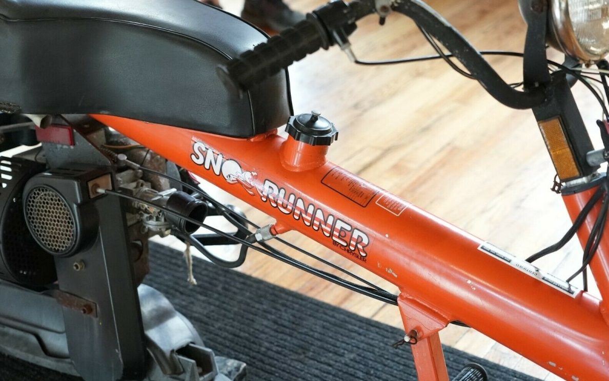 This example is a non-runner and the seller states, “Does not run, being sold as-is No formal mechanical evaluation has been made“. The Hemmings article stated that a restrictive exhaust system cut the power of that single-cylinder, 134 CC marine engine to just 7 HP so that the Sno Runner, “was good for a top speed of around 25 MPH in ideal conditions, but those were specific conditions, indeed. A Sno Runner will really only run on flat, highly groomed trails“. Hemmings ultimately summed up the Sno Runner by stating, “Hyped as a sizzler, too little horsepower caused it to fizzle“.