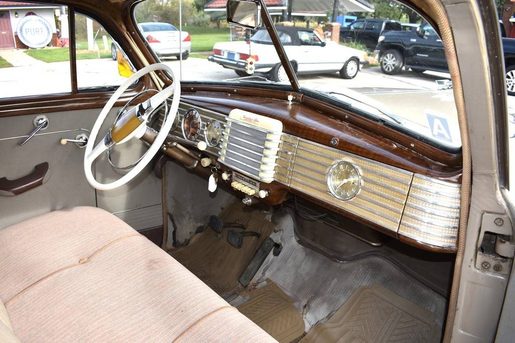 I can just see me driving this to pick up my sister, and her saying, “You’ve got to be KIDDING me.”, as she remembers our days in that ’42. I think our car’s interior was more tan and brown, than this one, and I believe our steering wheel was plainer.