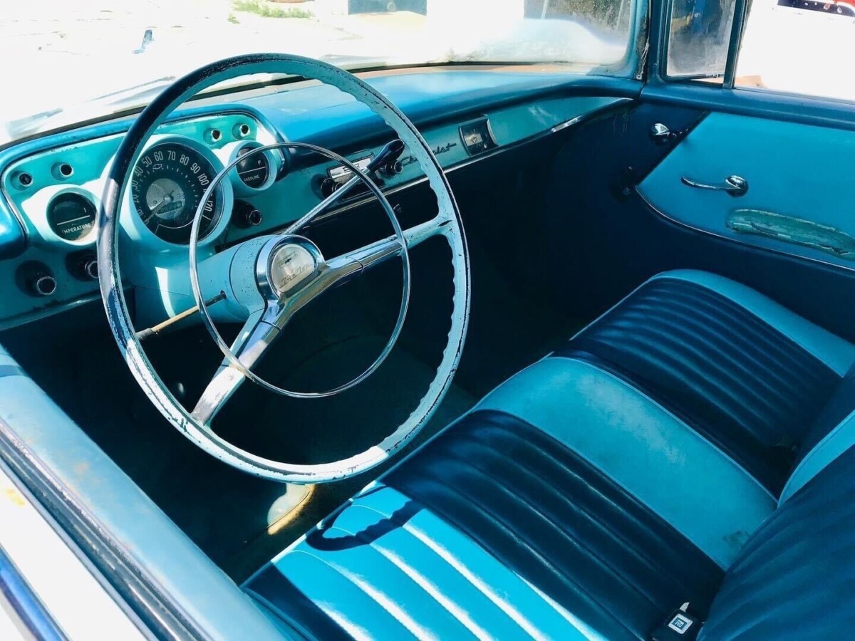 Once it emerged into the light of day and was treated to a clean, this Chevy revealed itself to be a tidy classic. The vintage wheels aren’t original but suit the car’s character. If the winning bidder craves authenticity, locating the correct steelies and hubcaps shouldn’t be challenging. The Larkspur Blue and India Ivory color combination is classy, with the paint retaining a respectable shine. There’s no mention of prior restoration work, so if it is sixty-six-year-old paint, its condition is impressive. A close inspection reveals chips and marks, but they do little but add to the car’s character. A complete restoration would have the car shining like a new penny, although its existing imperfections allow it to wear its survivor badge proudly. There is minor rust in the lower rear quarter panels, but it hasn’t progressed far. Repairing it and matching the paint should be possible if the winning bidder follows the preservation path. Otherwise, the floors and frame are rock-solid. The trim and glass are in good order for a survivor-grade vehicle, meaning this ’57 is ready to provide immediate enjoyment.