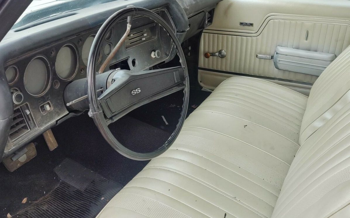 So what’s under the hood now? It’s a pre ’69 big block, probably a 396 CI, 325 gross HP engine but the alpha code would need to be revealed to know for sure. The engine does not run and does not turn over. It is connected to the original Turbo-Hydramatic 400, three-speed automatic transmission and does have the correct twelve-bolt differential with boxed trailing arms bringing up the rear. There is no doubt that this is a genuine SS 396 Chevelle, the debate is regarding its original engine.