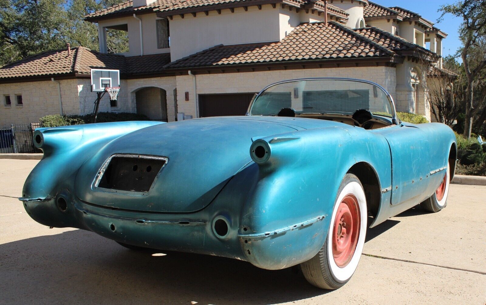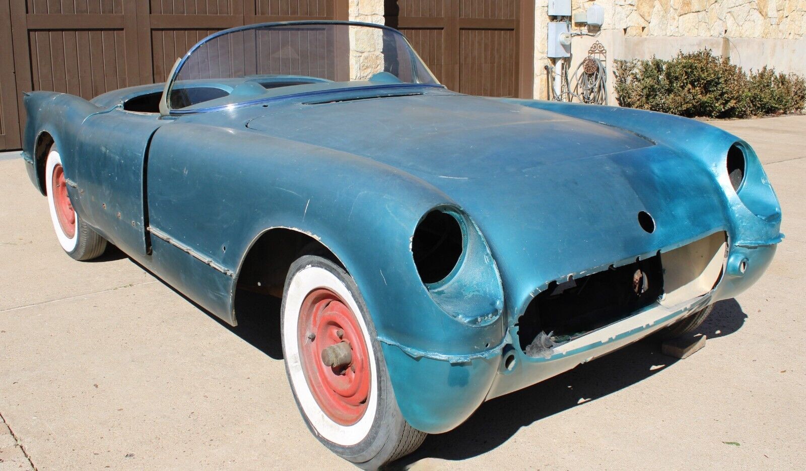 The very first three years of the Corvette’s life were touch and go. Only 300 of these hand-built vehicles were assembled the first year on a makeshift assembly line in Flint, Michigan, with most going to dignitaries. Chevrolet moved production to a much more capable facility in St. Louis, Missouri the following year, expecting to produce over 10,000 of these cars per year. When reality hit them in the face and sales expectations weren’t being met, the first thing the company did was add other colors besides Polo White. This 1954 Corvette for sale on eBay in Austin, Texas is a project car that is currently painted a shade of blue. Is this one of the 300 Pennant Blue Corvettes made in 1954 to help drum up sales? At a current bid of $11,599, is this car a candidate for rebuilding based on the rare color when quite a few parts are still missing?