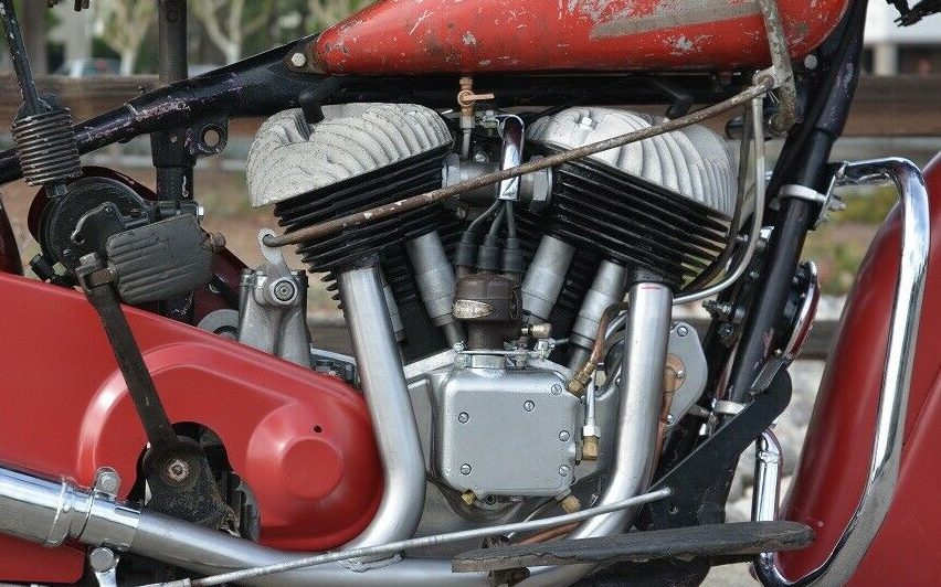 You can see the Indian head logo on the speedometer. Hopefully, this is an original part of the bike. As mentioned before, the gas tank and fenders appear to have a very different level of patina and aging to the paint. The seller says that the tank and fenders are original Indian equipment, but doesn’t say if they are original to THIS bike.