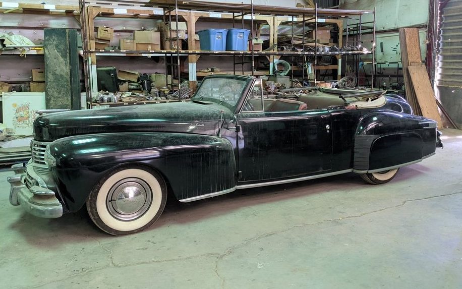 Measuring over 18ft long and weighing approximately 4,130 pounds, this car has some presence! Only 1,596 examples were built in 1947, and they each cost over $4,000 when new. For context, that was four times the price of a basic Ford Club Coupe. This Lincoln is sporting black paint that looks to be in excellent condition. While I do wish the photos showed the car a bit closer, the only issues I could spot under the dust were some chipped paint along the top of the front fenders where they meet the hood. I didn’t see any rust or damage, and imagine that with a wash and buff that paint would shine up well. Also, notice the intact continental kit perched above the rear bumper, first introduced on (and named after) the 1942 Lincoln Continental.