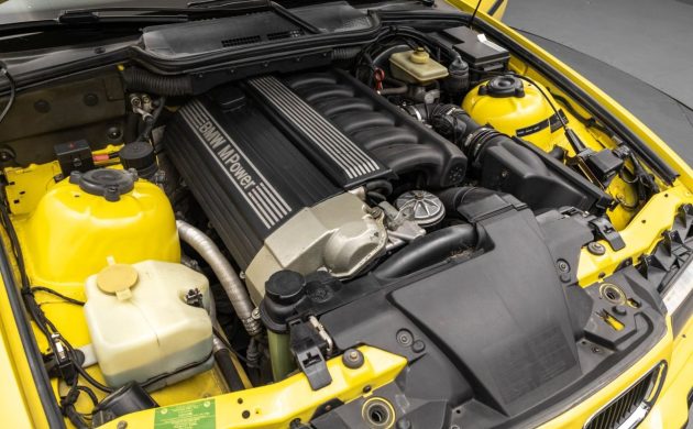 Inside, the black leather interior looks remarkably well preserved, with factory finishes still intact. The five-speed manual gearbox is the only way to experience BMW’s S50 3.0-liter DOHC inline-six, which was rated at 240 horsepower when new. Power delivery is linear and responsive, and combined with the M3’s legendary chassis tuning, it makes for a sports coupe that remains highly engaging even today.