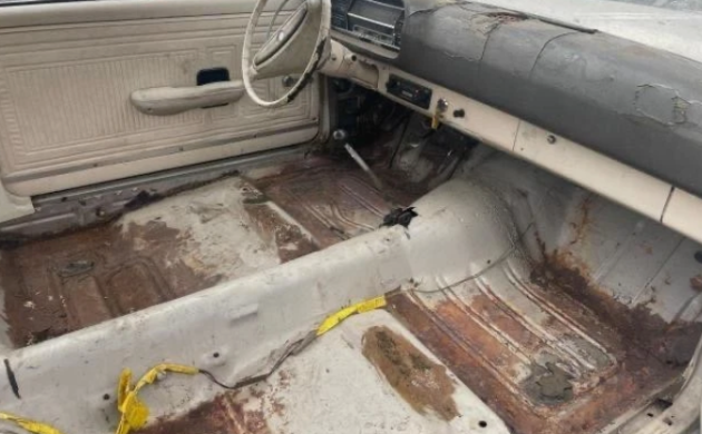 The body seems solid, though the floorboards are not. The dash will need to be redone or replaced. Carpeting is included but not installed. The beige paint has run its course, but if you’re going for the sleeper look, maybe some clearcoat could work instead. This is a 4-lug nut car and I’ve always wondered why Ford went to the trouble of just not using 5-lugs on all Falcons and Mustangs. Do you see this project in your future?
