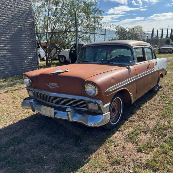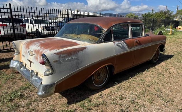 Just because it’s a Tri-5 Chevy. Does not mean that it is automatically worth more than $5,000 in this condition. There are alot of good original parts here if you are restoring a more desirable model. (Front clip, trunk lid, bumpers and trim. And maybe mechanical bits. It looks terrible and having seen Arizona interiors, probably the only thing in the interior worth anything would be the dashboard. GREAT PARTS CAR!