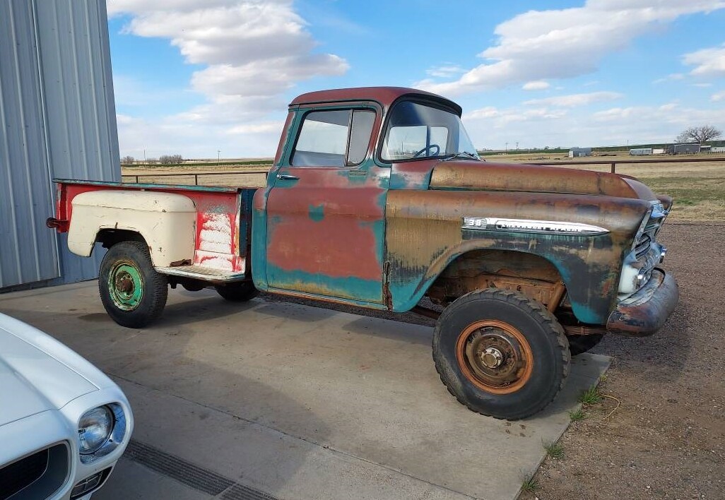 Chevrolet’s Task Force Series of pickup trucks were built from 1955 to 59. They had many technical improvements from the prior Advance Design Series, like a 12-volt electrical system. For the last two years, light-duty versions of the truck were known as the Apache. The seller’s pickup has the optional NAPCO-supplied Power-Pak four-wheel-drive set-up which was used until that hardware was sourced in-house beginning in 1960. The seller’s ’59 Apache has the Power-Pak and a seller-installed extended bed for hauling larger cargo. Located in Weldona, Colorado, this running cosmetic project is available here on craigslist for $12,000. Thanks for another cool tip, T.J.!