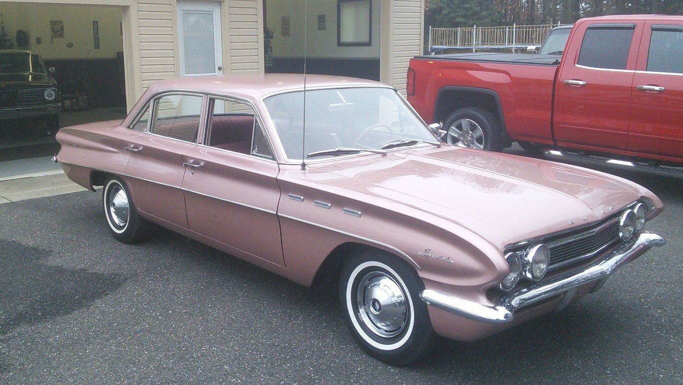 Rose is the name of it. My 1st car was a 1962 Buick special. White with a rose colored top and rose colored interior. It had the 215 c.i. V8, 2 speed automatic, am radio, power steering and the very rare dash mounted clock. I wish I could afford to buy this car.