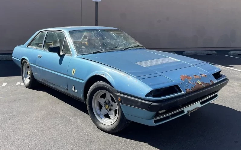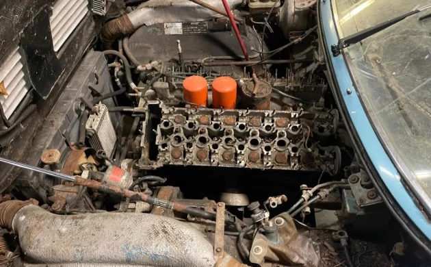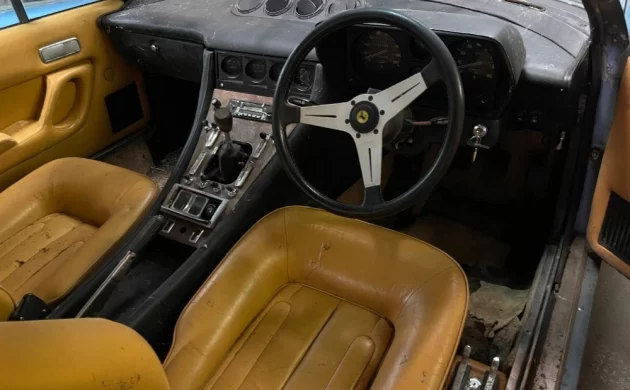 This Ferrari is a challenging project. It’s not just the engine that’s a mess, the body is rusted nearly all the way around, and the nose has been damaged. Even the defrost vents are rusty! Yikes. Maybe a parts car.