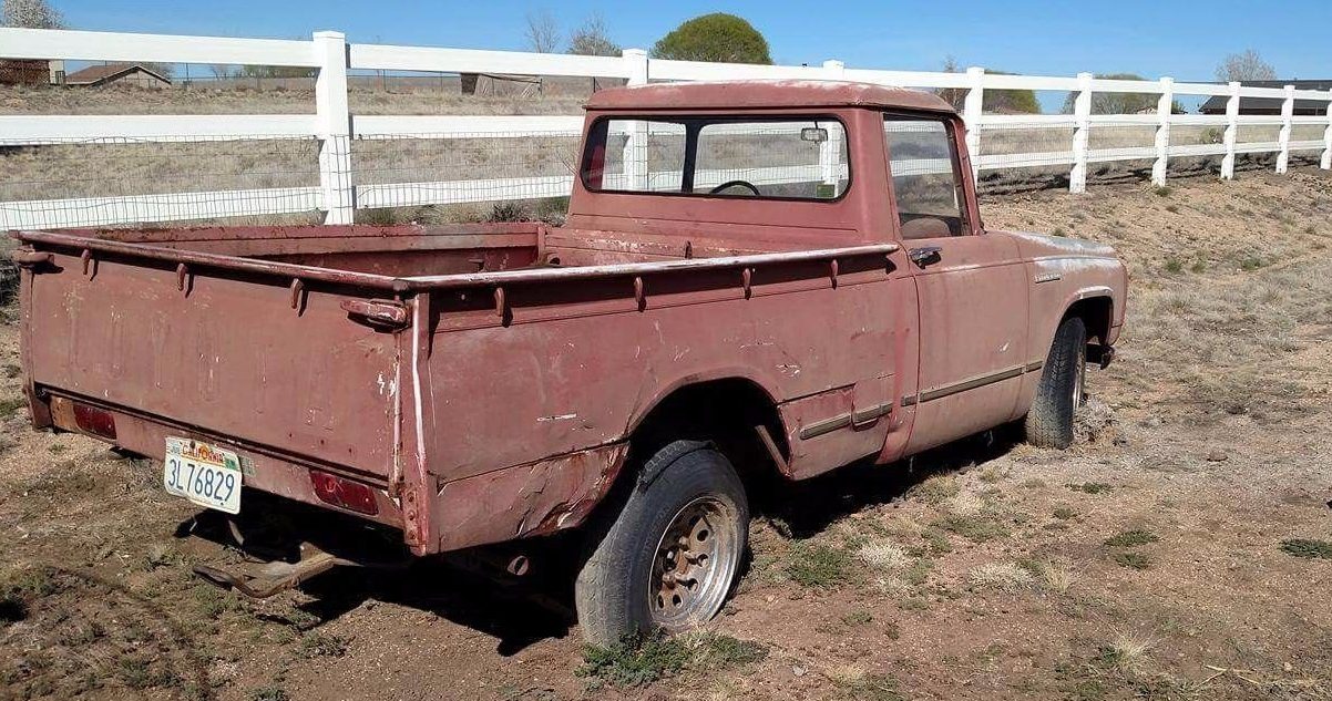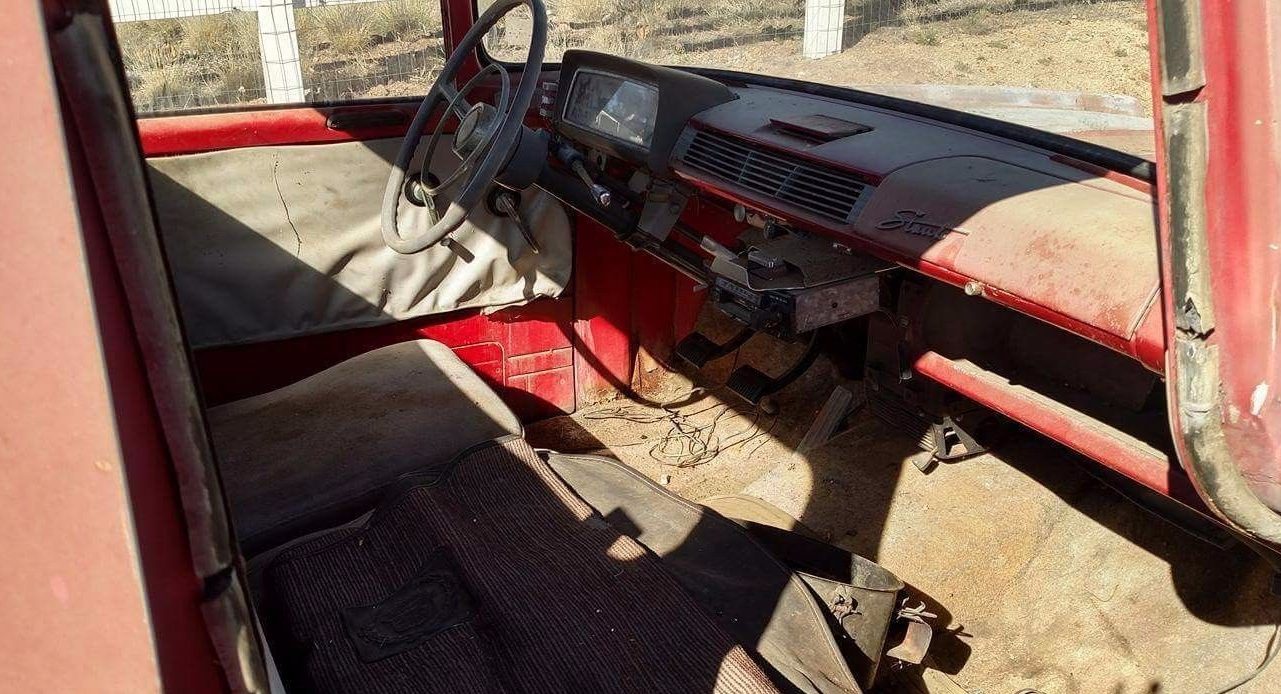 From this angle, it’s clear the Stout no longer wears original wheels and its paint has essentially been burned off after years of high-desert sun exposure. The California sunset license plates provide another indication as to when this Toyota stopped being roadworthy, and the seller vaguely mentions that it doesn’t run but that the engine will turn over. Cabin glass appears to be intact, which is likely darn near impossible to replace at this point.