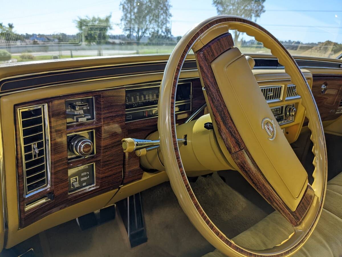Browsing the photos, it’s obvious that this 45-year-old Cadillac has been coddled, pampered, and protected. It is all original, unrestored, and comes with records and receipts since it was new including the window sticker. The Sovereign Gold paint presents well as does the white vinyl top, chrome, stainless, and glass. It’s also sporting the optional wire wheel covers which are a classy touch. The seller states that the Cadillac had been stored under a cover in a garage for many years before he purchased it and it’s obvious. It looks nearly showroom new.