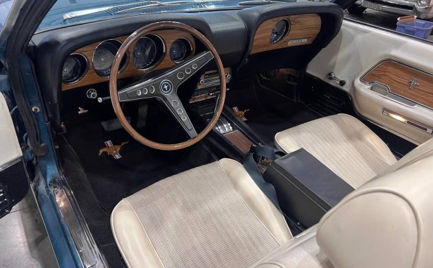 Ford performed its second update to the First Generation Mustang for the 1969 model year, increasing the length and width to give the car a greater sense of presence. This came at a cost, with weights climbing across the board. This car is a perfect example of that philosophy, because Ford’s Dealer Specifications Sheets confirm that this Convertible tips the scales almost 50 lbs heavier than the same car produced in 1968. The first owner ordered this Convertible in Gulfstream Aqua, with the seller recently adding a White Robbins power top. They describe the paint as a “good 10-footer,” which confirms that a close inspection will reveal imperfections. However, with the panels straight, the car is definitely presentable. The underside shot is encouraging, with no rust or other nasty surprises. In fact, the only rust of any description is confined to the quarter panel drop-offs, although the listing suggests that these areas are patchable.