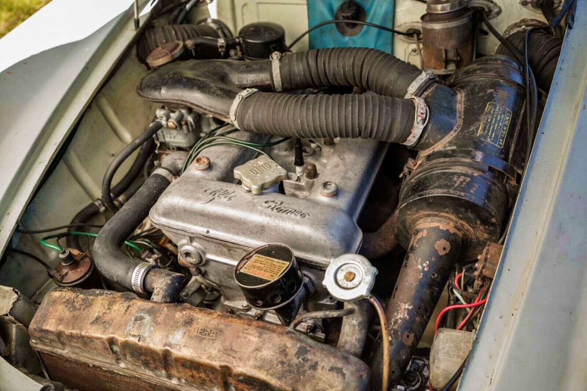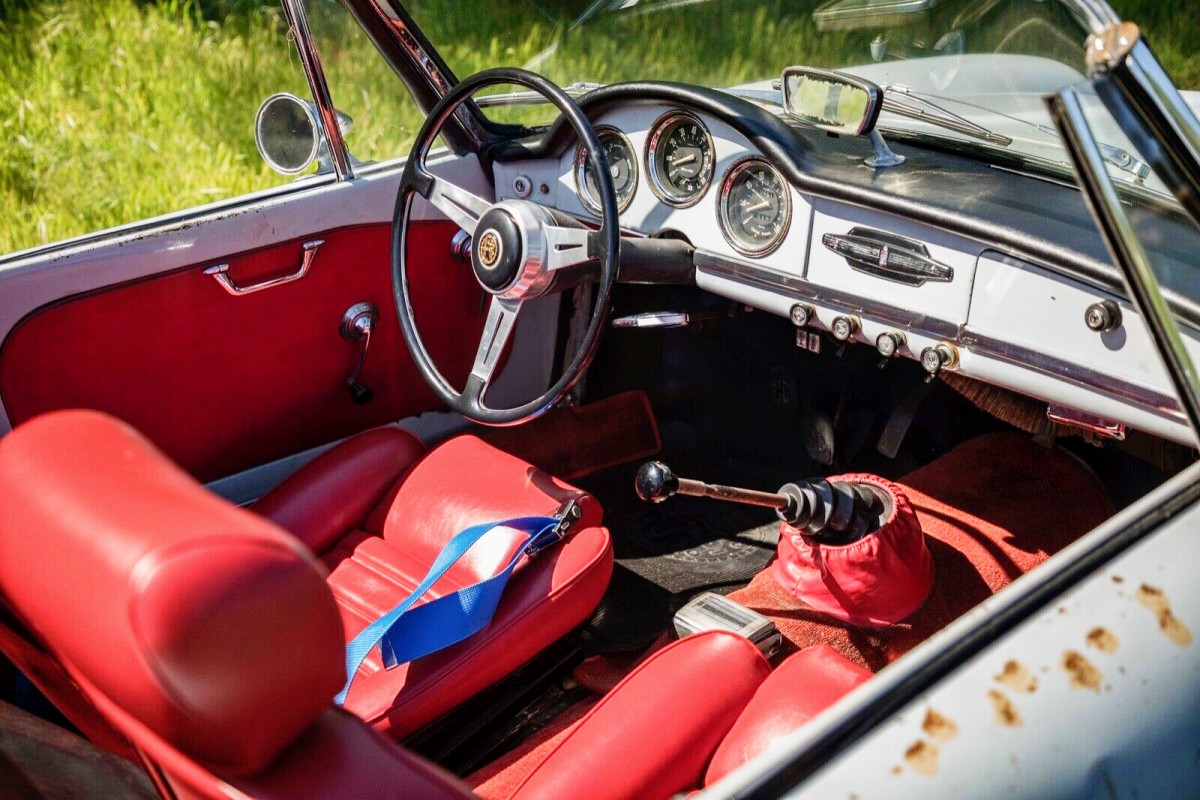 These really are neat cars. I’ve told this story before, but seeing this posted right after the TR4 , bears repeating. In the early 70’s, my brother, just out of HS, bought a ’63 Alfa just like this, pretty much same condition, for $500 bucks, and the guy “threw in” a very tired ’64 TR4, like in the previous post. We got the Triumph running, sold it for $250 bucks. The Alfa was a really fun car, high winding, neat sounding motor( note, no radio on this one, you were suppose to just enjoy the sound of the motor), 1st car I drove with a 5 speed, rare for an early 60’s car, handled nice, stopped great,( for big drum brakes, I believe) it was a very nice car, a Fiat it ain’t. Not without fault, though. #3 spark plug blew out a stripped hole ( not the Alfas fault) we took it apart, and upon reassembly, must have had the cams a tooth off, as it never ran the same, and he sold it,and picked up an AH 100-6 for $1,000 bucks. Those were the times to buy cheap sports cars, nobody wanted them. I’m simply flabbergasted at what these bring for prices today, I send my brother these just to rub it in what they’re worth. If you have the money, I can say from experience, this is one car that’s well worth it.