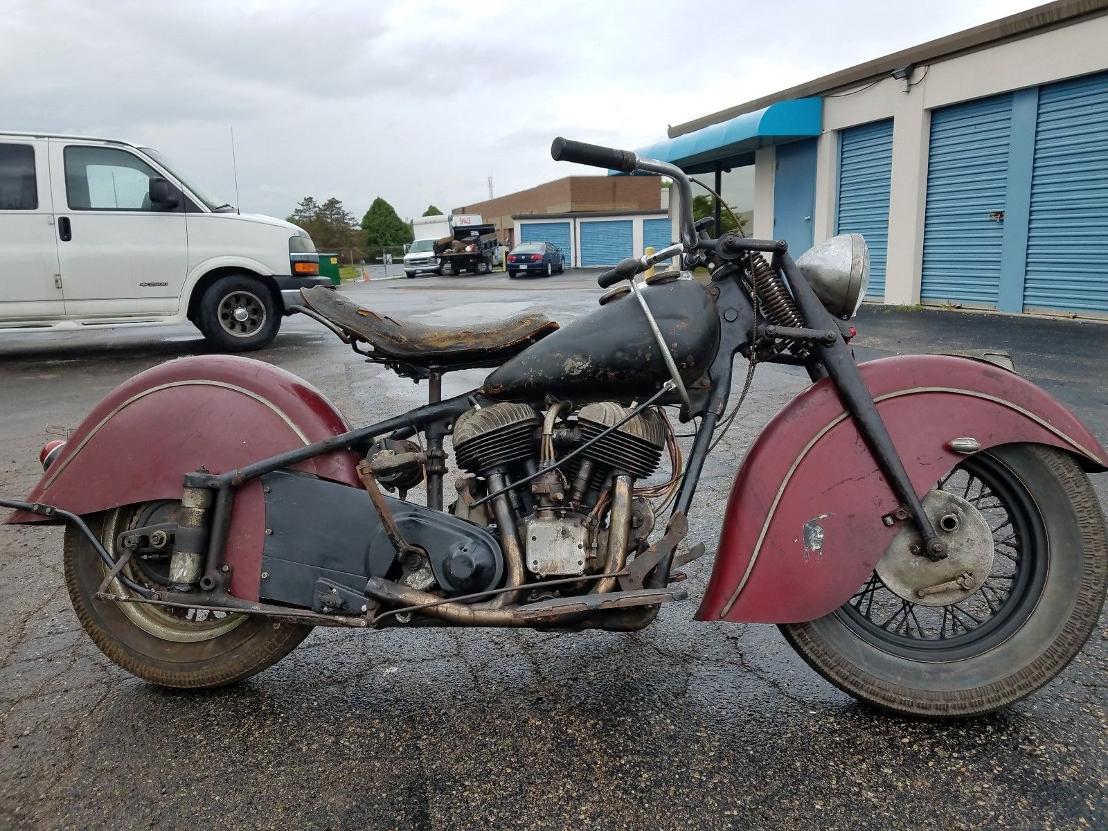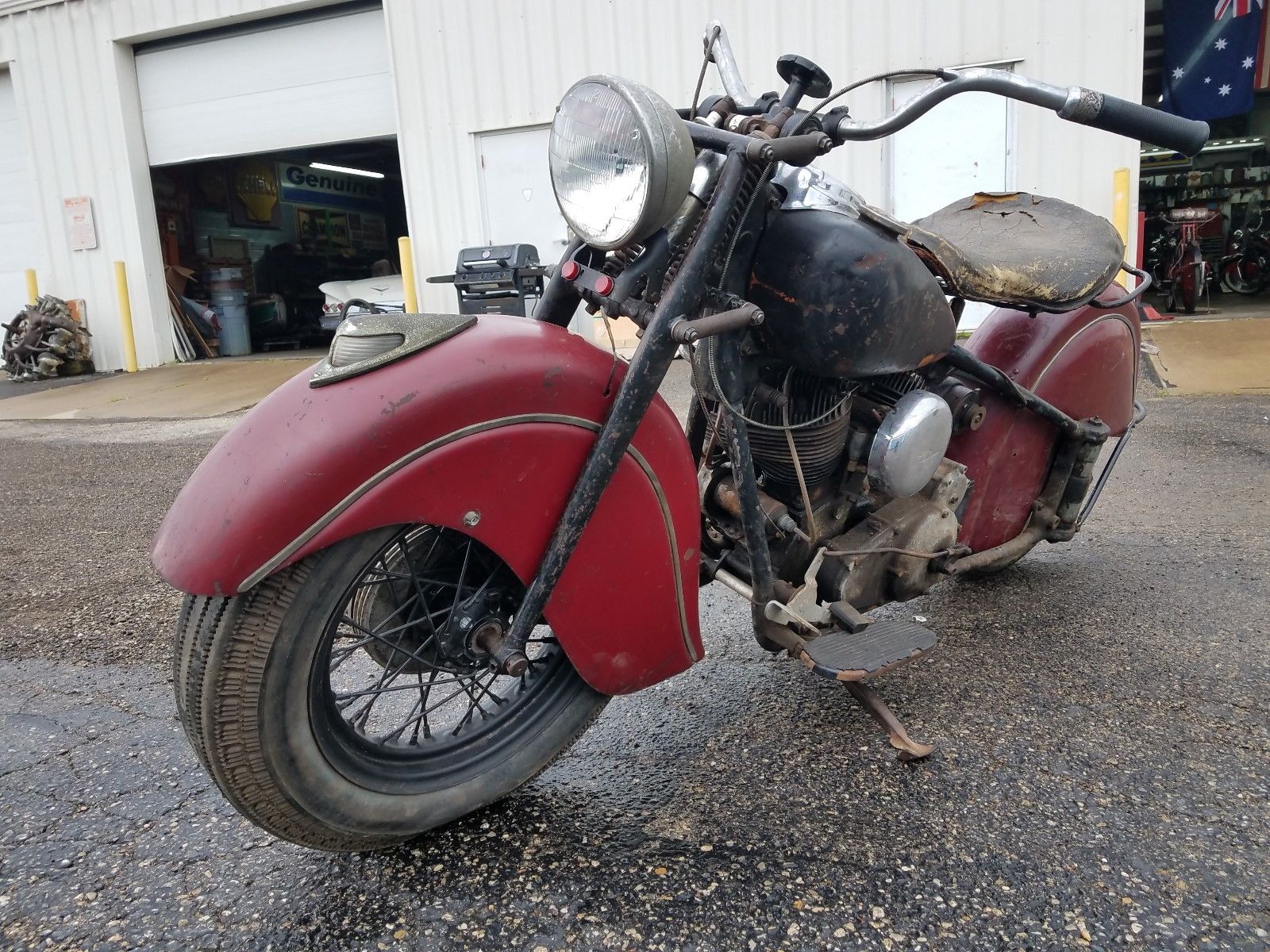 My Dad had a ’48 Chief in 1950 when he was in the Navy. He was riding in the mountains in California, slid off the road and into a creek. Climbed back onto the road and hitchhiked home. Never went back after the bike.