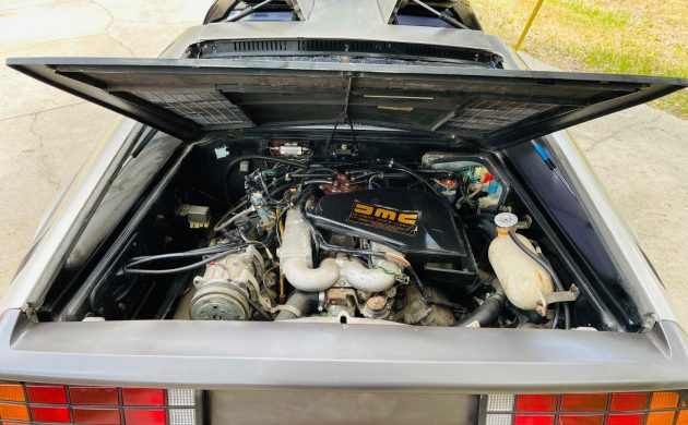 Upon its release, many potential buyers expressed dissatisfaction with the DeLorean’s acceleration and power. All DeLorean’s featured a 2.85-liter SOHC V6 engine that generated 130 horsepower and 153 lb-ft of torque, manufactured by Peugeot-Renault-Volvo and installed at the DeLorean facility. Although commonly referred to as the DMC-12, this designation was based on the original target price of $12,000, whereas the final MSRP was set at $25,000. The seller is not sure if the engine is original or if it runs. The car is being sold for a parts car and might make a good conversion project to a modern powerplant.