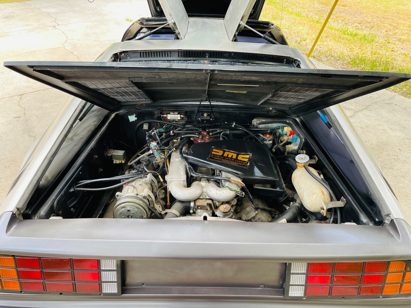 Upon its release, many potential buyers expressed dissatisfaction with the DeLorean’s acceleration and power. All DeLorean’s featured a 2.85-liter SOHC V6 engine that generated 130 horsepower and 153 lb-ft of torque, manufactured by Peugeot-Renault-Volvo and installed at the DeLorean facility. Although commonly referred to as the DMC-12, this designation was based on the original target price of $12,000, whereas the final MSRP was set at $25,000. The seller is not sure if the engine is original or if it runs. The car is being sold for a parts car and might make a good conversion project to a modern powerplant.