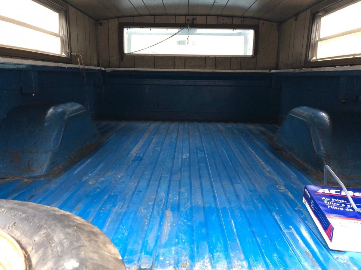 It’s claimed to have been garaged all of its life, and that much is obvious. The seat upholstery looks too good for original, but is absolutely perfect for this era of pickup truck. Coordinating dashboard paint looks excellent, as do the carpets. The door panels are uncut and there’s no evidence of modifications of any kind. It comes with A/C, power steering, and a tilt wheel inside the cabin.