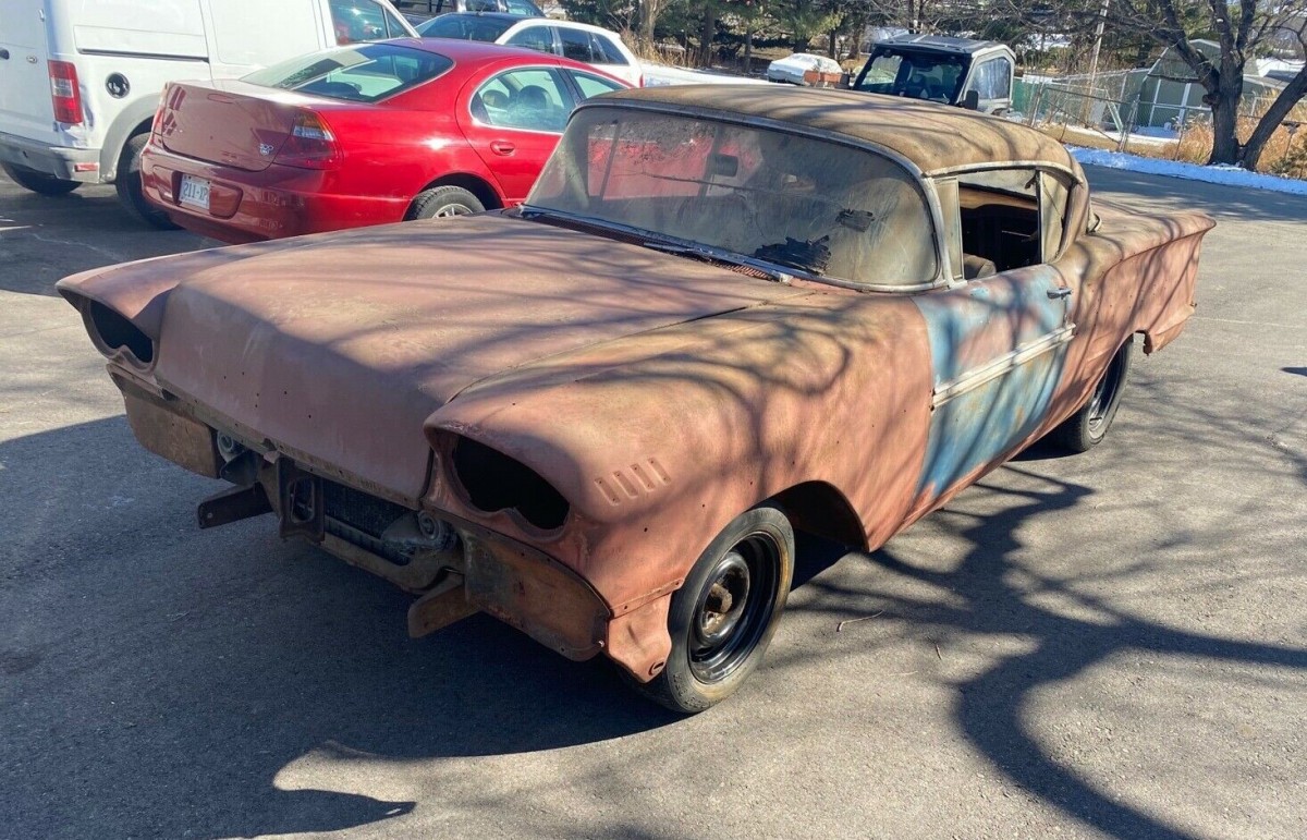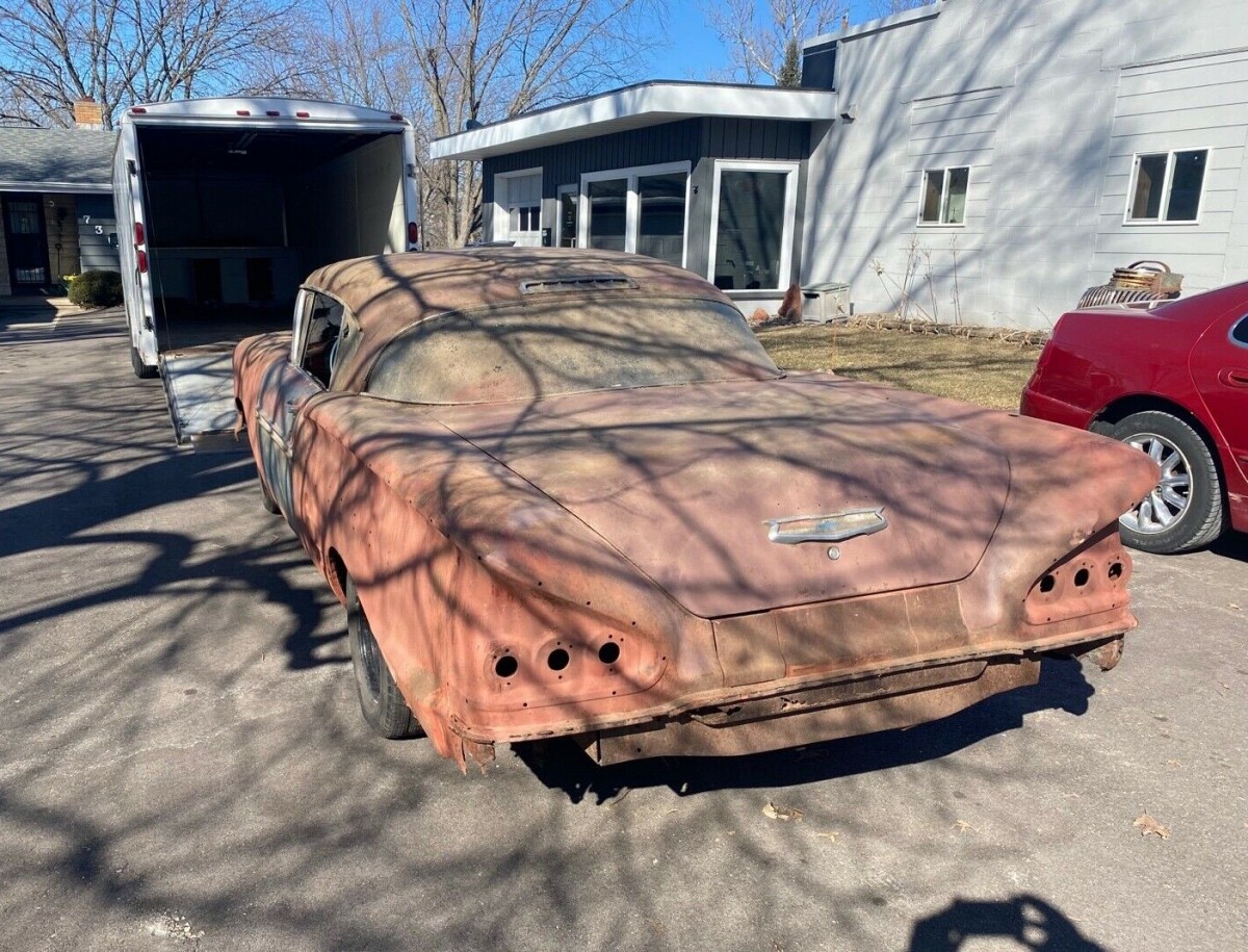 Judging by the primer job & 60s steering wheel I’d figure the seller is imbibing pretty good weed if he thinks $8k is right for a roller of rust & parts in need of a new home where space it at a premium these days not to mention overhaul costs of unrestored old 50s cars that sat in a barn for decades.