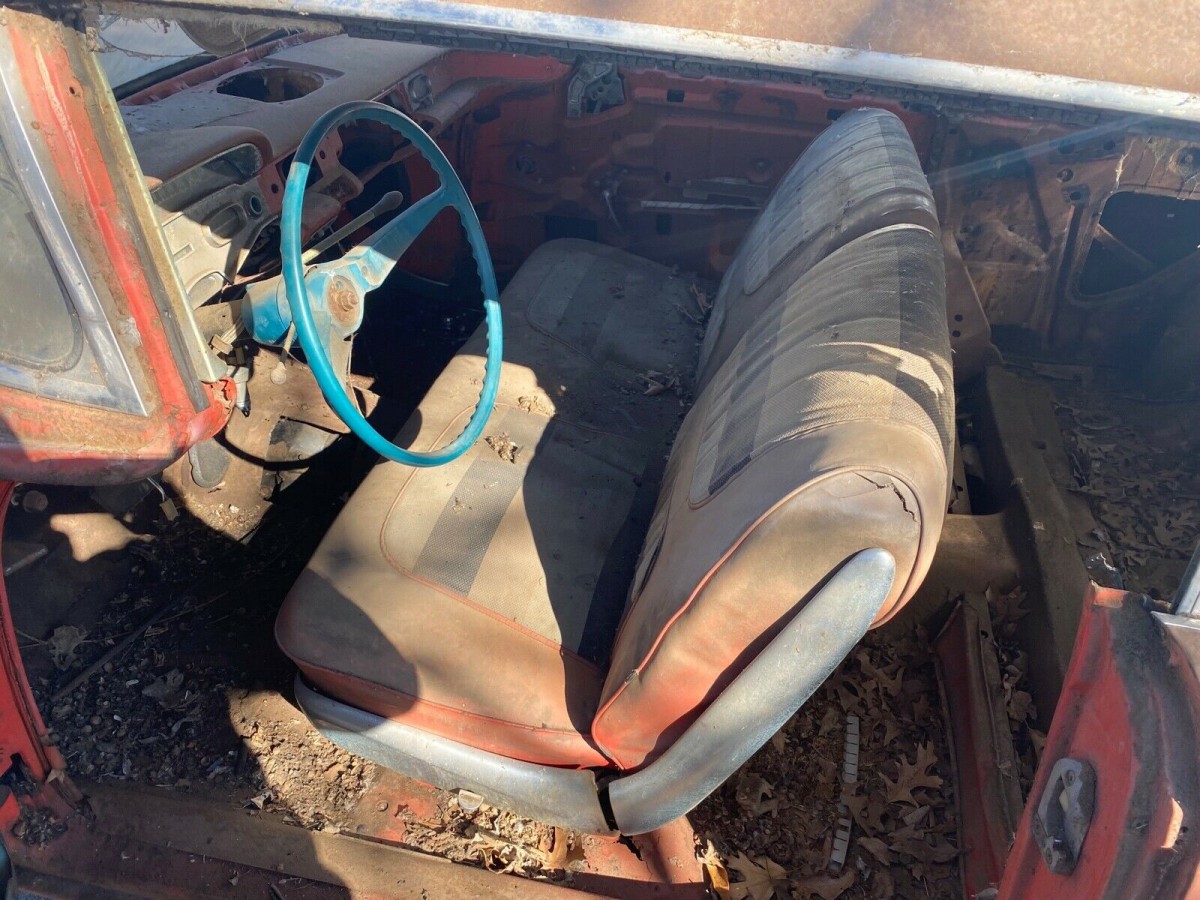 Under the hood, there appears to be a 283 cubic inch V8 paired with a Powerglide 2-speed automatic transmission. Neither have likely been functional in some time. The car came equipped with power steering and brakes, but the booster for the latter is missing. This Chevy has a posi-traction rear end, but it came from a 1963 Impala. There are lots of hours and dollars awaiting the buyer who takes on this project, but when finished it could fetch $50,000 (according to Hagerty).