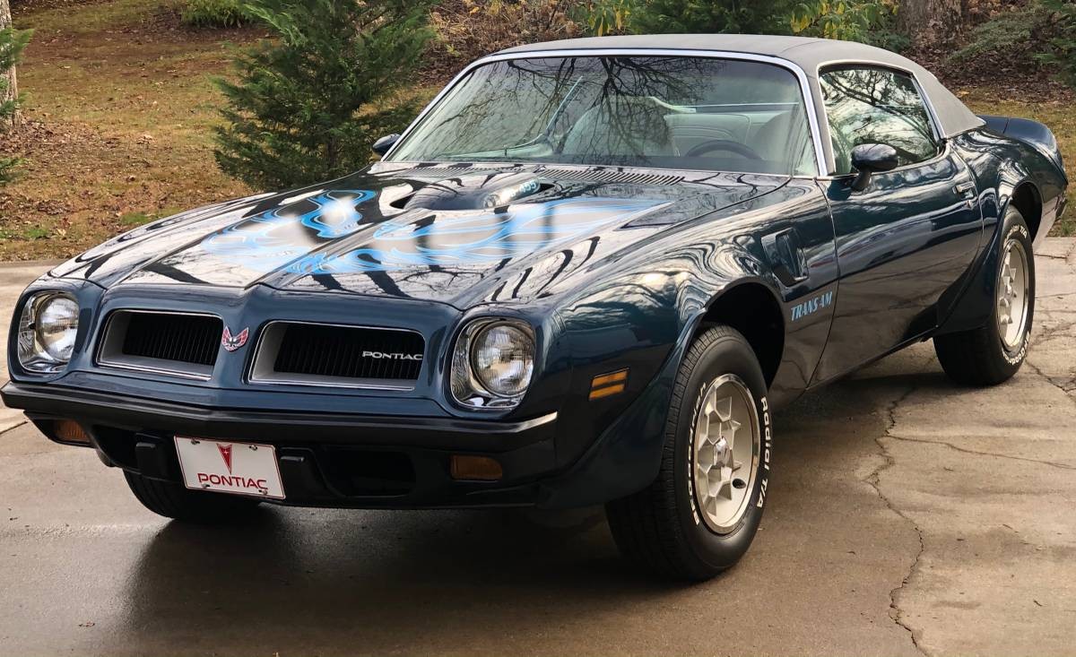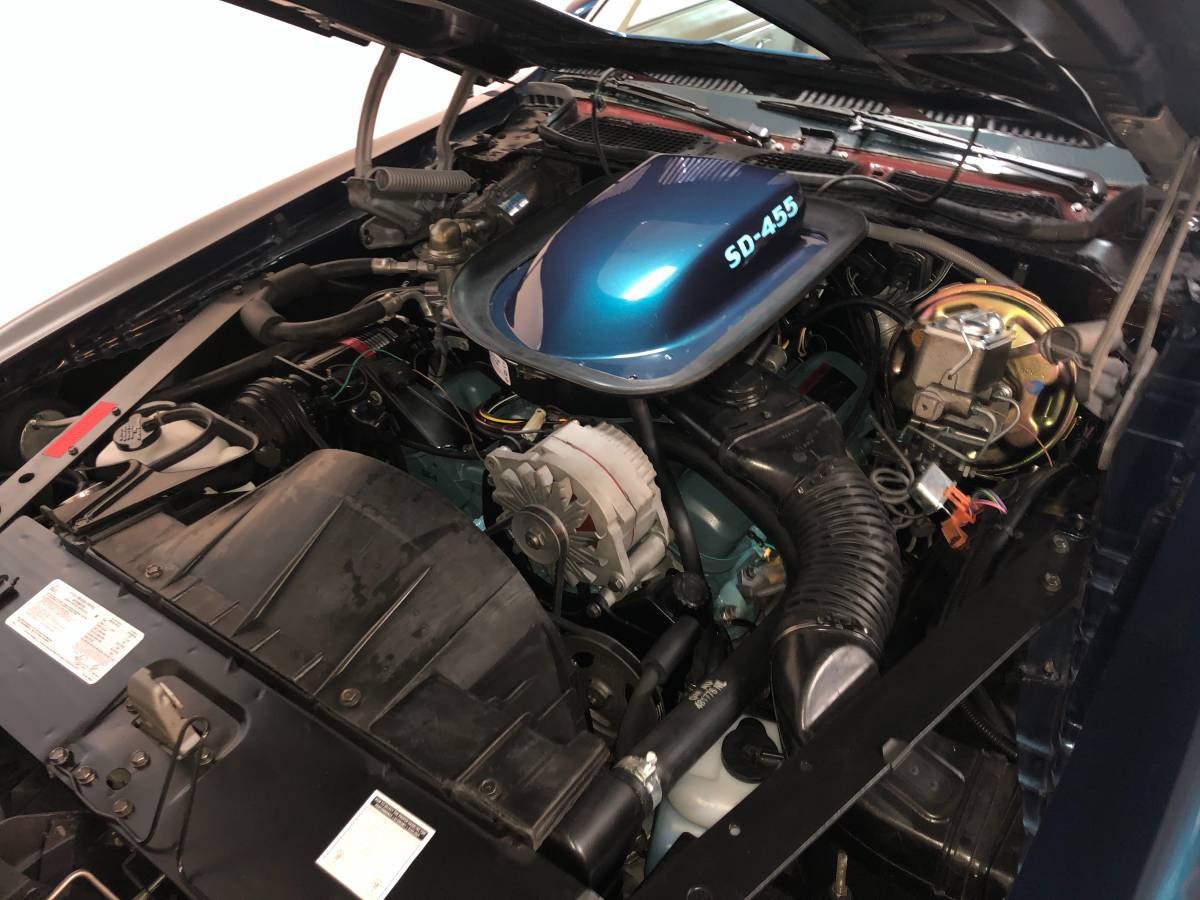I bought a new Admiralty Blue Trans Am in 74, but with a 400 and 4 speed. At the time, I knew of three SD455’s, here in South Jersey. One was a red 4 speed that belonged to the owner of a Sunoco station, the second one was white with a saddle interior and automatic, and the third was Admiralty Blue automatic with a white interior. The Blue car belonged to the son of a local Pontiac dealer and was pretty much like this car, with air, windows, tilt, Custom Interior, rear defogger, Honeycomb wheels, etc. I was friends with the owner of the white car, and it was fast!