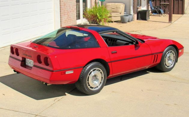 Like red? Then this 1987 C4 Corvette coupe is worth a look: it’s Bright Red over Red, the intense color relieved slightly by its black steering wheel and black dash/console. It has traveled only 25,600 miles since new, and has never been modified. Advertised here on craigslist for $14,900 cash (in person!) or trade for the right classic car, this ‘Vette is located in Excelsior Springs, Missouri. Everything works, and the car is about as pristine as they come. Corvettes offer a lot of performance for the money, though certain years sit near the top of the pyramid. Let’s place this one into our hierarchy of desirability…. but first, a thanks to T.J. for the great tip!