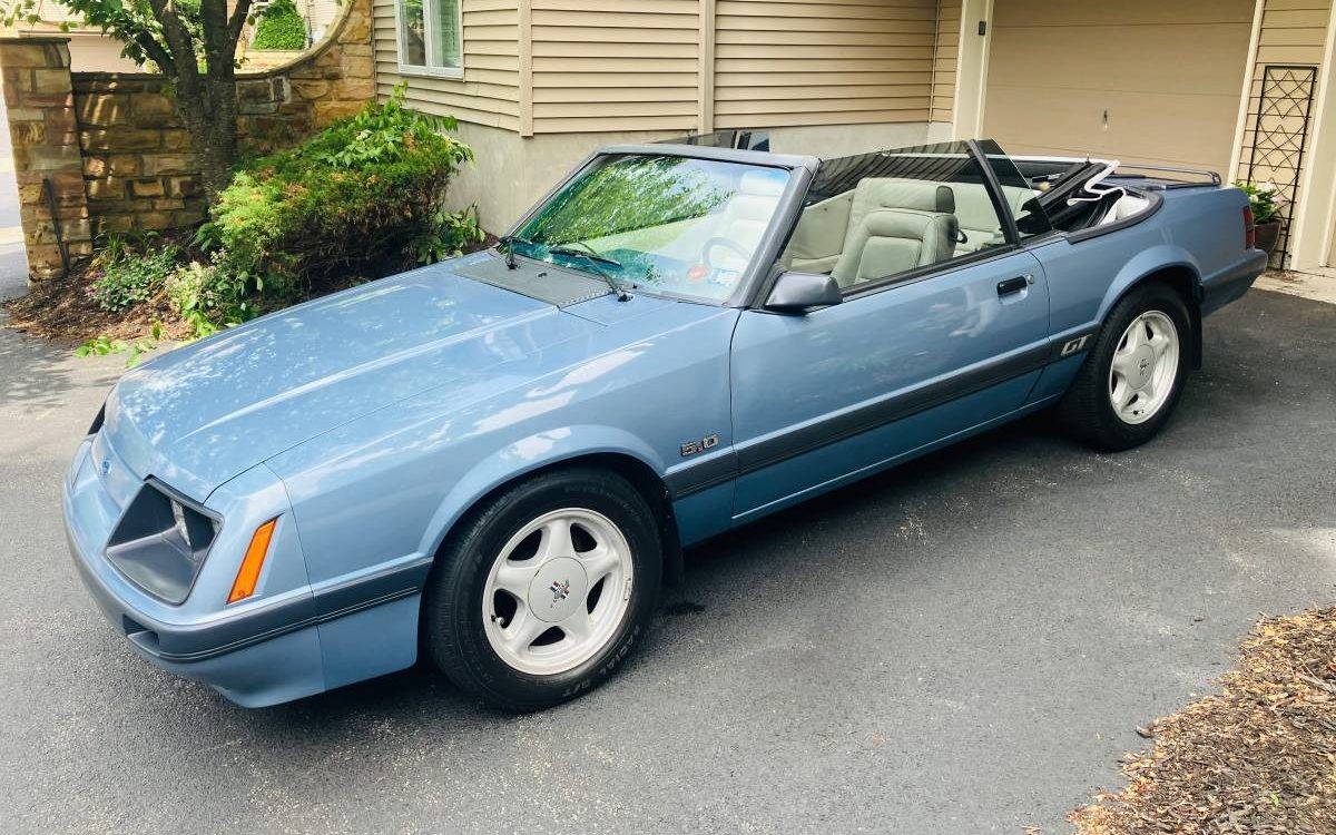The seller is asking $14,999 for this super clean Fox body, and thanks goes to Barn Finds reader Mitchell G. for spotting it. The four-eyed Mustangs, with their quad sealed-beam headlight receptacles, are often the black sheep of the Fox family. While beauty is always in the eye of the beholder, I’ve always liked the older Mustangs if for no other reason than you simply don’t see them as much. This ’86 model stands out even more for the unusual color scheme of baby blue over a white leather interior, a combo we don’t often see and that stands out even more with the white convertible top.
