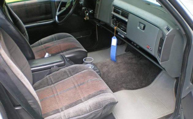 The interior is configured just the way you’d want a pickup that gives off “sport truck” vibes, with bucket seats and a center console. The interior is in excellent condition with little in the way of wear and tear, and the striped inserts running down the center of the buckets is still quite vibrant (the buckets have been transplanted from a Blazer). From the factory, it came with A/C, a tilt wheel, cruise control, power steering and brakes, and the Tahoe package – so this S-10 is very well equipped for what is essentially an entry-level truck. The dash is also in excellent shape and you have to love seeing the little details like the S-10 badge on the glove box door still present.