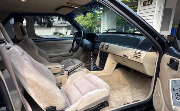 The seller is asking $34,500 for this rare Saleen. The higher-than-normal odometer reading isn’t unusual for these collector cars, as the bulletproof drivetrain makes them easy to drive. Despite not being a time capsule, this hasn’t hurt values for these Saleen Fox bodies, which grew to incorporate more and more performance improvements over time. In some ways, if you really love Saleens, you have to embrace the fact that Steve Saleen made this car significantly better without adding a ton of power. The chassis, suspension, and brakes were dramatically improved over stock form, along with better seats and a tidy three-spoke steering wheel.