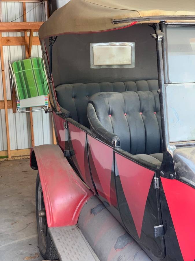 Addressing the first and most obvious feature of the Model T: That paint is not original. It also isn’t terribly nice. However, this was how it was painted when it was offered as a prize in a raffle, and it has stayed that way ever since. Even the bulldog on the back of the car dates back to then. The paint is now starting to peal in a few places, so I suspect that taking the body back to bare metal might be a fairly smart move. There is also a pretty obvious tear in the top, but the right person might be able to repair this. Overall though, the car does look to be quite solid.