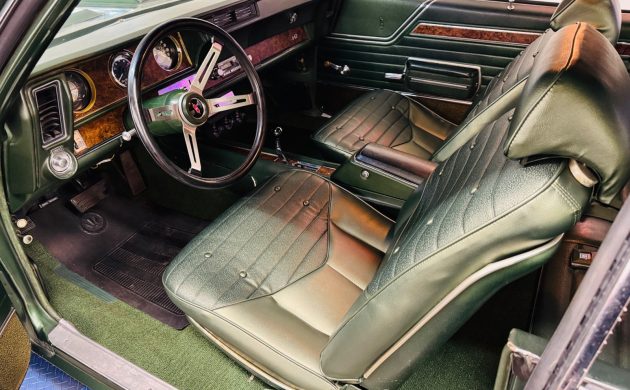 The Green theme set by this classic’s exterior continues inside. There are some additional gauges and switches, including a tachometer mounted in the gauge cluster. Otherwise, it appears to be in the same condition as when it left the factory. The vinyl seatcovers are spotless, and as is the case with the carpet, there is no evidence of wear. The dash and faux woodgrain are excellent, as are the pad and console. If potential buyers seek a high-end driver, this interior helps this gem to fill the bill.