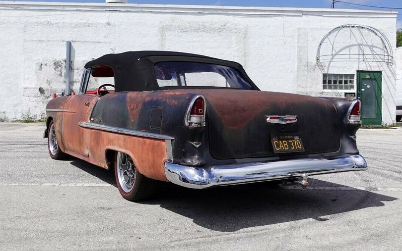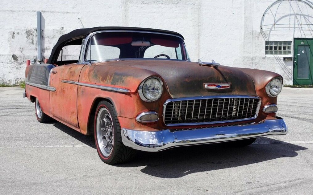 This 1955 Chevrolet Bel Air Convertible combines several build styles into an awesome performance package. From the rat rod/patina body to the pro-touring chassis to the resto-mod interior, this car looks like a blast to drive! It can be found for sale here on eBay with a current bid of over $54,000 and the reserve hasn’t been met yet. The seller thinks the body panels are original. Aside from the new top and Fusion Rally wheels, at first glance, you might think this is some old heap. But a closer look shows a beautifully restored interior, awesome drivetrain, and polished trim. Located in Boca Raton, Florida, this thing would be perfect for cruising in the sun.