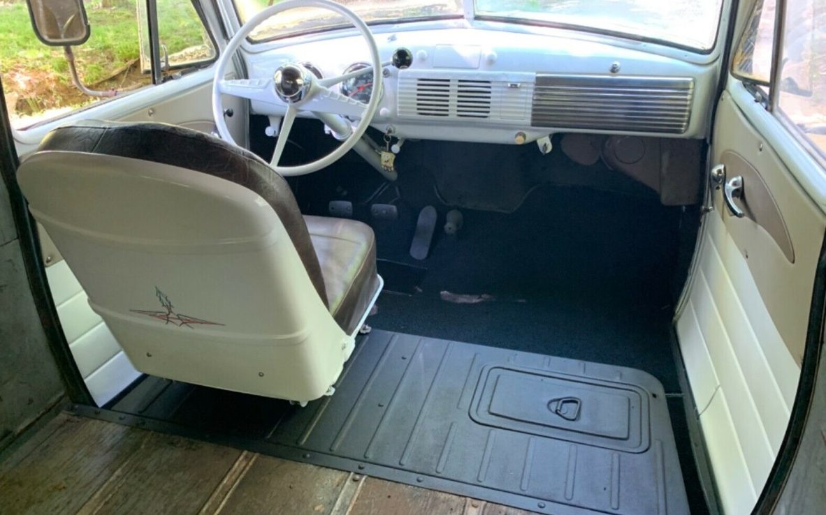 Moving indoors, the listing states that there is a, “Freshly Painted custom corvette white interior.” I somehow have missed the Corvette theme. I’ll admit there is a white painted dashboard, steering wheel, two partial white door cards, and a white seatback but no Bowling Green flavor beyond that. As a recognizable plus is a wooden floor that the seller describes as, “The panel’s original wood bed is in excellent condition with no soft spots.” It is present and accounted for and a nice touch.
