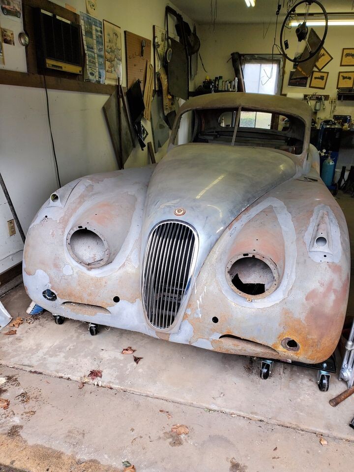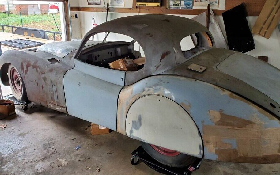 The Jaguar XK120 was introduced at Earl’s Court in 1948. It was a sensation, catapulting the British car industry to an unprecedented level of success. With a body influenced by pre-war French coupes such as the Talbot Lago, the car was also the fastest production car that had ever been made. Between 1949 and 1954, about 12,000 examples were made, with just a quarter of those coupes. Here on Facebook Marketplace is a 1952 Jaguar XK120 coupe with an asking price of $26,500. This car is a project and must be towed from Westfield, Massachusetts. It has no title. The body has been mostly stripped and set on the frame. The seller says he has all-new sheet metal; it’s not clear if that’s in addition to the car we see, and if so, whether it comes with the sale. The original color shown on the Jaguar Heritage Certificate is Twilight Blue with a blue interior. We have T.J. to thank for this elegant tip!