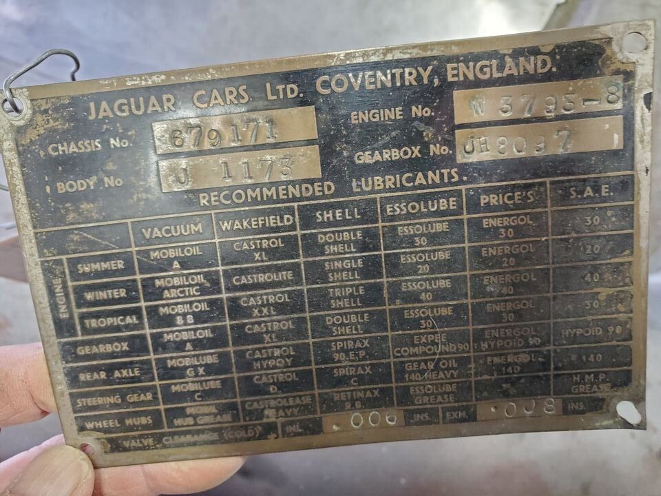 The VIN offers the chassis, body, engine, and gearbox numbers. The body number is on the scuttle under the bonnet; the chassis number can be in two places, either the radiator cross member or the top of the left-hand frame member by the engine mount. These are usually very difficult to read. The engine and gearbox numbers are stamped in a couple of places each. While a completely matching numbers car might bring a slight premium, Jag buyers typically care most about the engine, and secondarily about the gearbox. At this point, plenty of 120s have seen 3.8-liter motor transplants and upgraded transmissions.