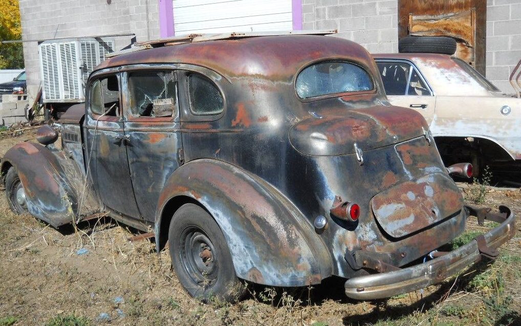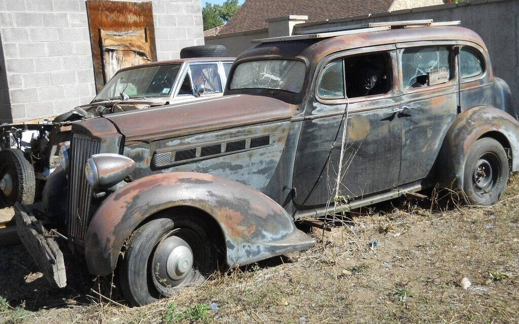 And now for something from the “What in the Sam Hill happened here”? department. An old Packard is always an exciting find, and if you think about it, they’re all old, but I mean one that I would consider to be a classic like this 1936 Model 120. The seller states, “This is a project car” which may be the understatement of the year – but let’s see what’s really going on here. Auto searcher T.J. found the listing for this sedan that is “relaxing” in the Arvada, Colorado sunshine and is available, here on craigslist for $4,750.