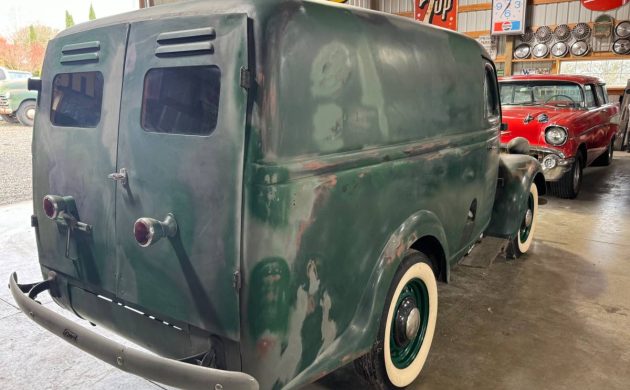 Considering the engine didn’t come with an oil filter and was cooled via thermosyphon, the chassis needed grease everywhere all the time, and the van was delivered with only one reluctant windshield wiper, the existence of bumpers is a nice surprise. Love the barn doors, exterior hinges, and rear lamps on stalks. This pre-war van broadcasts charm like a debutante at a ball. But as appealing as it is, the price seems high; what do you think?