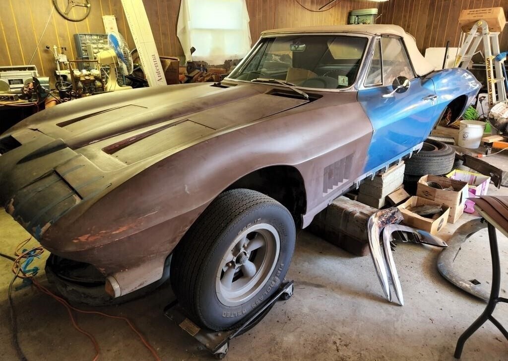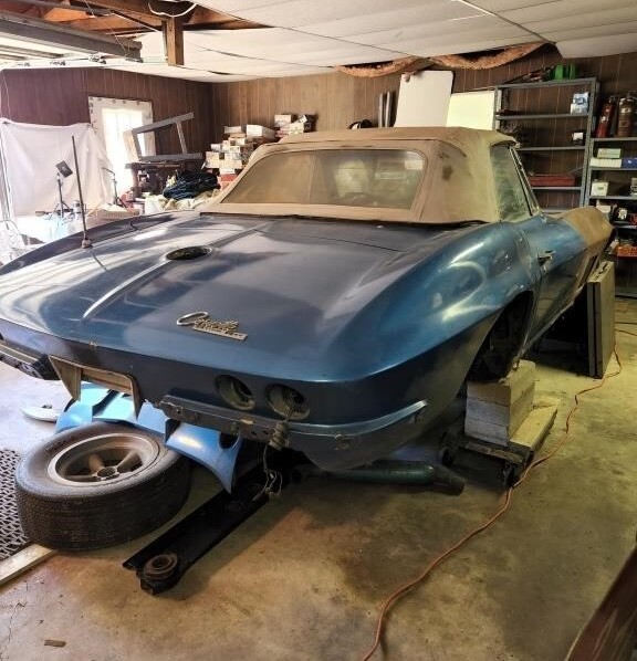 With its new body, look and accessory name (Stingray), Corvette sales jumped by nearly 50% in 1963. At more than 21,500 units, production was split roughly equal between the drop-top and the new coupe. The 327 Chevy Turbo-Jet V8 was the engine of choice for the ’63 Corvette, available in a variety of horsepower outputs. We don’t know which version the seller’s car came with and it was lost before or during the project phase the automobile stalled in.