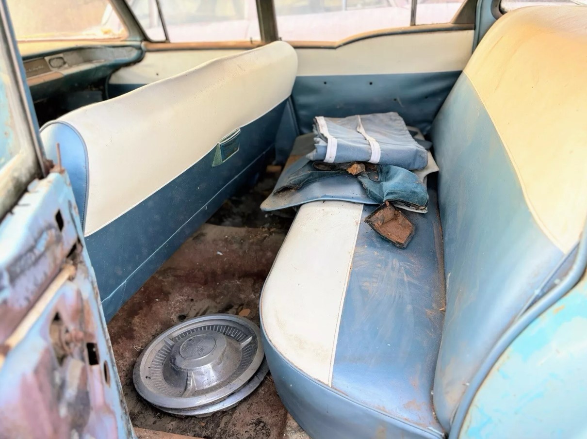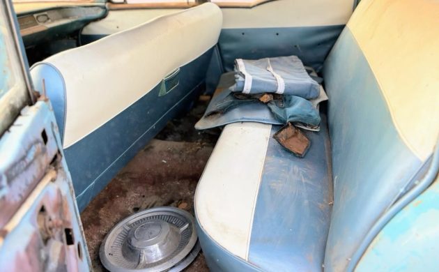 To dogwater: How can you deem it as JUNK, if you haven’t looked it over? Certainly a 1958 Chevrolet four door Biscayne is a worthy car to own and drive, if the frame and body still are solid. SOMEone thought enough of this one, to re-do its seats not too terribly long ago, by the looks of things, and an original hubcap lies inside. The question is, why did they give up on it? And as for the extensive patina: I actually see cars on the road like that. Unless we know, by inventory and inspection, what it would take to get this old girl back on the road, we really can’t assess it a status.