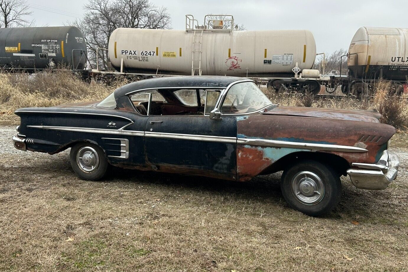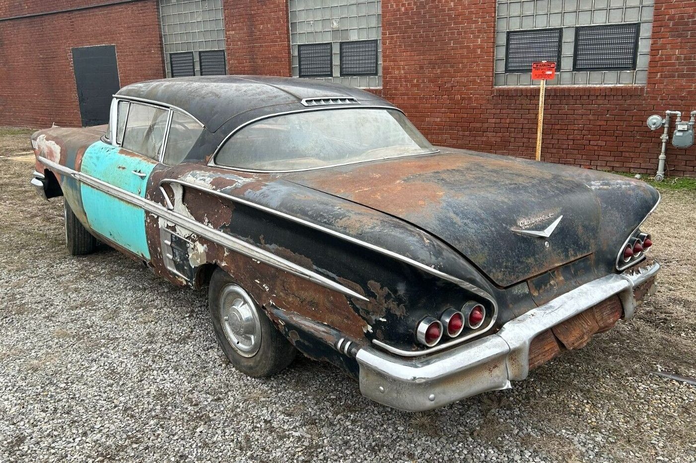 It is fascinating how certain cars from a particular movie become heroes while others attract a less dedicated following. That doesn’t make them less significant or important. They simply fall into the shadow cast by a dominant vehicle. Many people who have watched the 1970s classic American Graffiti are irresistibly drawn to the 1932 Ford 5-Window Coupe driven by John Milner. This is understandable because it is a stunning car that is a genuine hero. This is not an unsupported belief because hitting “Mr. Google” with a search for “cars from American Graffiti” will result in more images and hits for the Ford than for any other vehicle. However, I have always loved the 1958 Impala, owned by Ron Howard’s character, Steve Bolander. It is classy and cool in an almost understated fashion and is the vision that pops into my head when I see a ’58 Impala. Our feature car could serve as a foundation for a Bolander tribute, but the winning bidder faces a long road to reach that destination. It started life finished in Onyx Black, with tired traces visible across various exterior surfaces. The tired paint is the tip of the iceberg because the seller confirms significant rust requires attention. It is extensive enough to justify entirely dismantling this Impala, with many lower body extremities and the floors crumbling to dust. Of greater concern is the admission that there is frame rot. Its extent is unclear, meaning we must guess whether it is financially viable to repair. I typically recommend an in-person inspection before any classic purchase, and unless you are willing to roll the dice, it might be time well spent. It appears that most of the exterior trim could be revived, and there is no missing glass. However, the cloudiness of some pieces may prompt replacement.