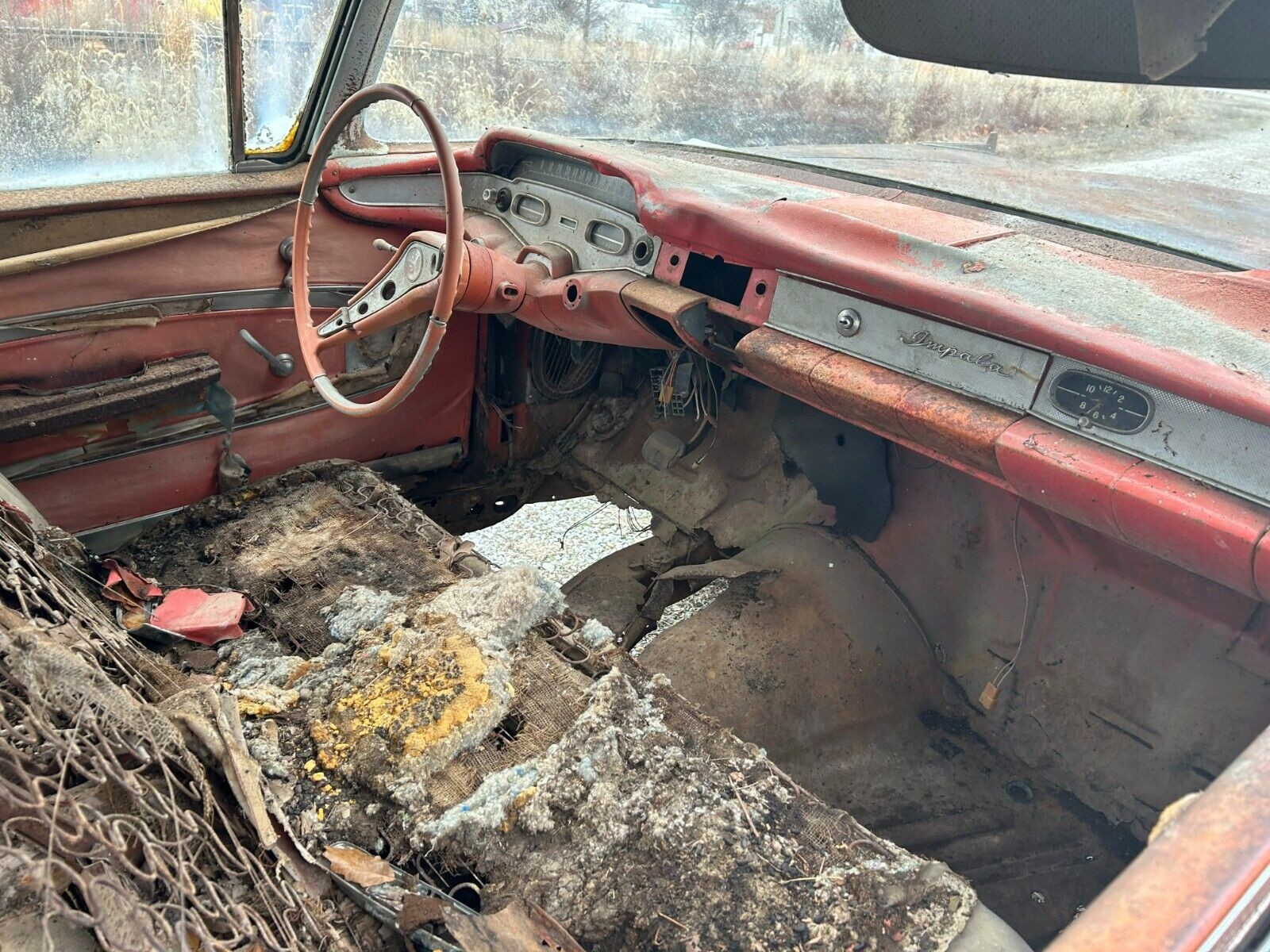 No chevrolet guy here, but I always liked the 58, vast improvement over the forced fed 57. Back in high-school, I had a buddy who’s dad one like this, black/red, with a 348, had a few good times cruising around, whenever his dad would let him take it to school, which wasn’t often, his dad didn’t want it tore up, as it was there family car, and only means of transportation, next to his mother’s 62 Falcon Futura. This was the early 70s, they weren’t exactly well to do lol. I think this one is doable, and worth doing. Just time and money, sounds easy anyway