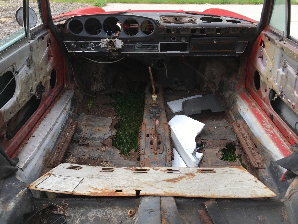 The is the interior from the gold car, which shows you just how solid this project was – and how ideal it would have been to secure both a solid foundation for restoration and a parts car for pillaging. Now, despite needing total restoration, the red car is at least listed without reserve – making a potential restoration more appetizing. However, the original matching powerplant is lone gone, along with the glass, transmission and most of the interior.