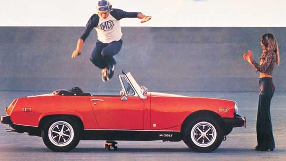 I dig the two tone paint job on this Midget featured in a period advertisement (I also dig the skateboarder’s baseball shirt) and wold do the same here, but with the prettier chrome bumpers from the green car swapped over. Actually, if the reserve is $1K or lower, I’d consider restoring both cars since neither one seems terminal in the rust category. If you had to take this project on, which car would you restore and which would you part?