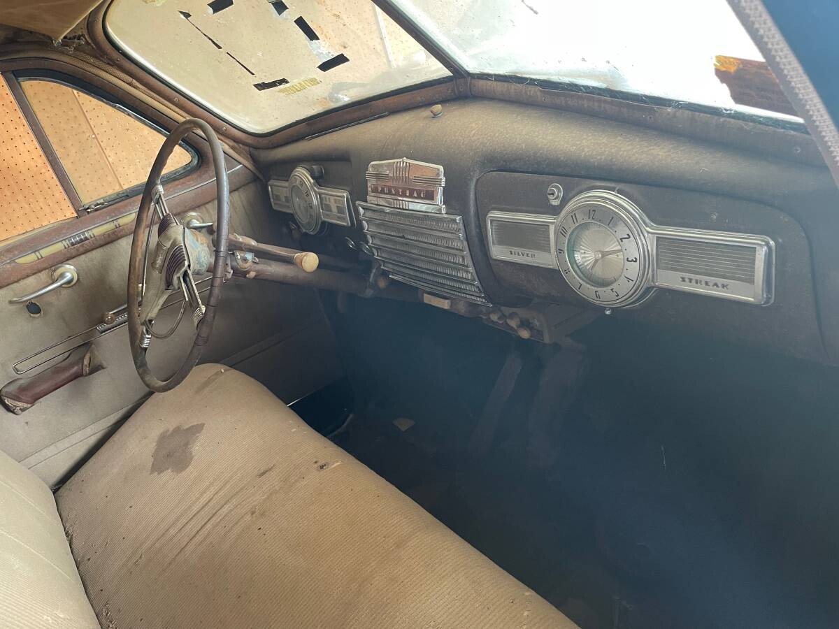 A 239 cu. in. flathead in-line six-cylinder powers this Series 25 Deluxe, though customers could opt for either the six or a 249 cu. in. in-line eight in all three trim levels. The motor makes about 90 hp when in good fettle; this one will need recommissioning though it’s a good sign that it will run at all. The transmission is a three-speed column-shift manual. It has a new six-volt battery (early six-volts are a specialty item so when it comes time to replace it, a little research goes a long way.) The car was last on the road in the mid-1990s, but its last registration was in 1967. The title is clean.