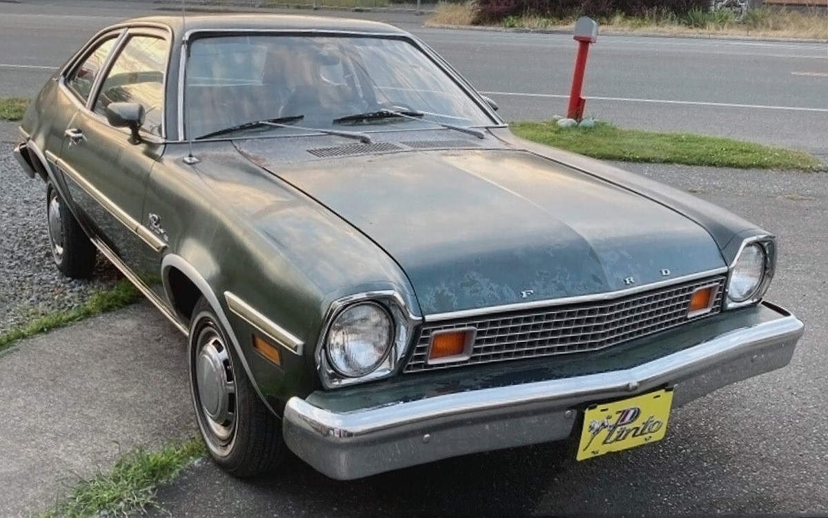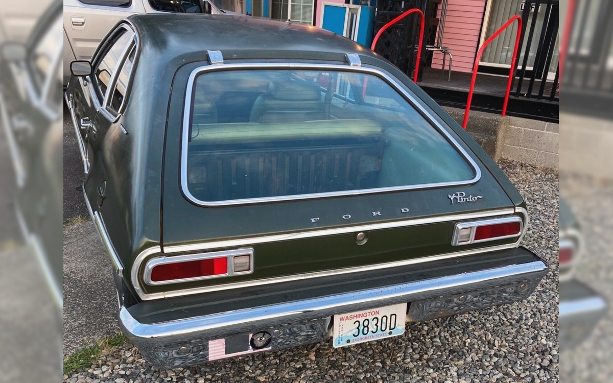 This car has a missing letter “O” and that’s the least of its problems. It’s original, like a time capsule that was left inside of a sealed ziploc in Puerto Rico for three decades which is a shame. This is a 1976 Ford Pinto with a new-for-1976 egg-crate grille and that looks perfect! You’ll see why that’s exciting in a minute. This one is posted here on eBay in Sultan, Washington and nobody is jumping on the $2,500 buy-it-now price.