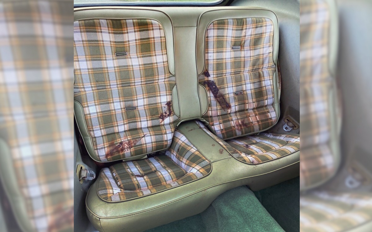 Flood car? Or just life in a high-humidity environment? The dark green / plaid avocado is a nice period-correct scheme, it would be eye-catching if restored. But I’d say too many problems here. Which is unfortunate.